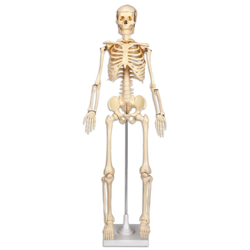 Compuesto por cráneo, tronco, caja torácica y extremidades articuladas.