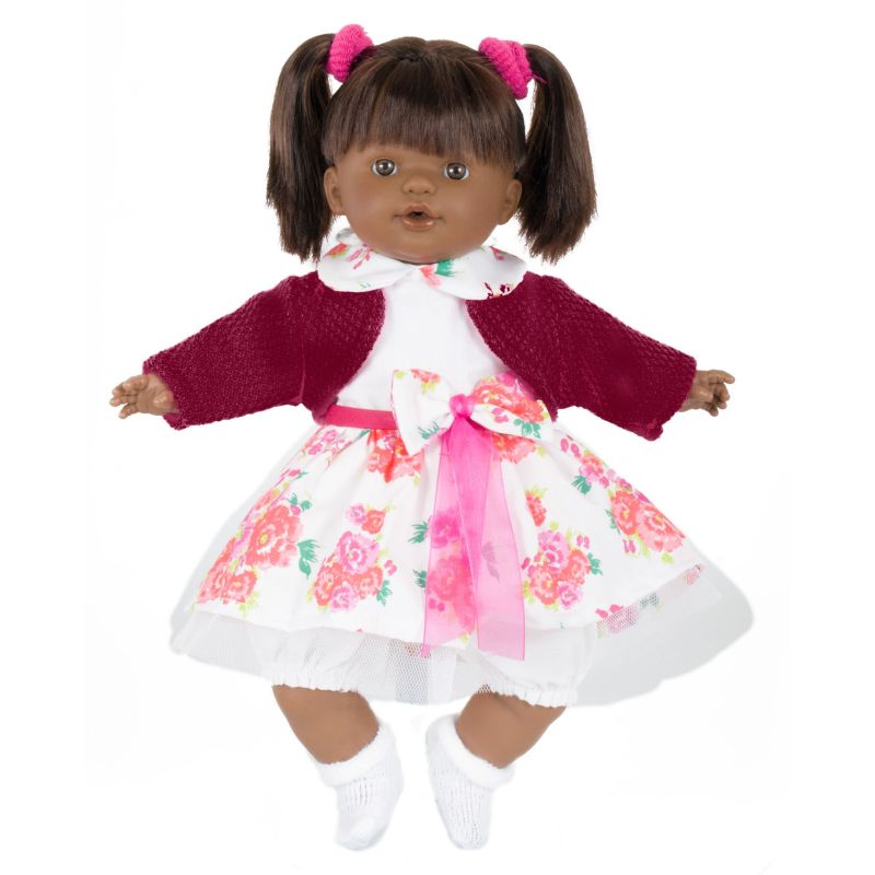 202322: ¡Juega sin parar y recrea miles de situaciones con estos simpáticos muñecos! - Estimula la imaginación y la creatividad. - Promueve la autonomía y el juego simbólico. - Desarrolla la motricidad y la coordinación. - La muñeca se sirve en modelos surtidos. Especificaciones: Edad recomendada: a partir de 3 años. Realizado en goma resistente en cara y extremidades. Cuerpo de tela blandita. Medidas: 38 cm de alto.