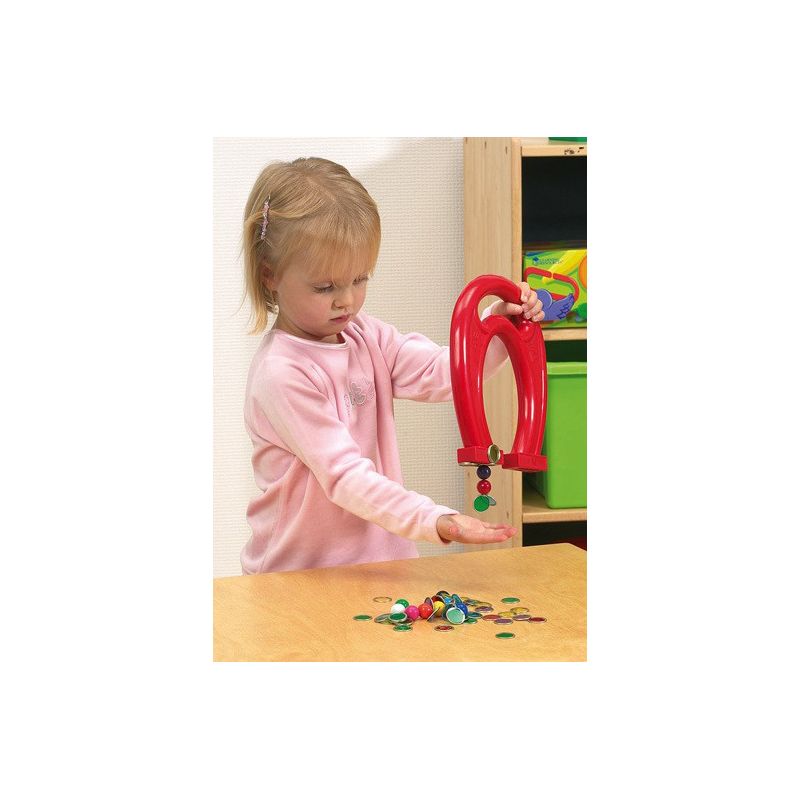205054: ¡Descubre el magnetismo con este imán gigante! - Fomenta la concentración. - Desarrolla la percepción visual. - Estimula la motricidad y la coordinación. - Despierta el interés de los más pequeños por las fuerzas magnéticas. - Gracias a su forma de herradura facilita el agarre de los más pequeños. Especificaciones: Edad recomendada: a partir de 3 años. Medida: 21,5 cm.