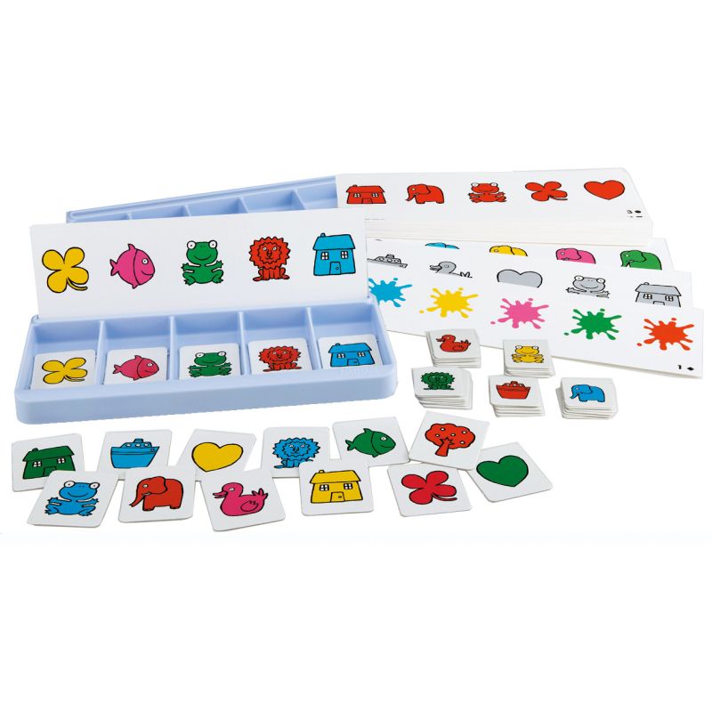 211305171: ¡Un taller perfecto para dar los primeros pasos en el mundo de la clasificación! - Permite clasificar y ordenar según la forma, el color y el tamaño. - Incentiva el razonamiento. - Estimula la capacidad lógica. - Ejercita discriminación visual. - Fomenta la socialización y el trabajo en equipo. Especificaciones: 34 fichas de actividades repartidas en 5 series de 25,5 cm x 8,5 cm. 50 fichas de cartón con ilustraciones de 5,5 cm x 4,5 cm. 2 cajas de separación de plástico de 27 cm x 12 cm. Guía didáctica. Para 2 niños. Edad recomendada: A partir de 3 años.