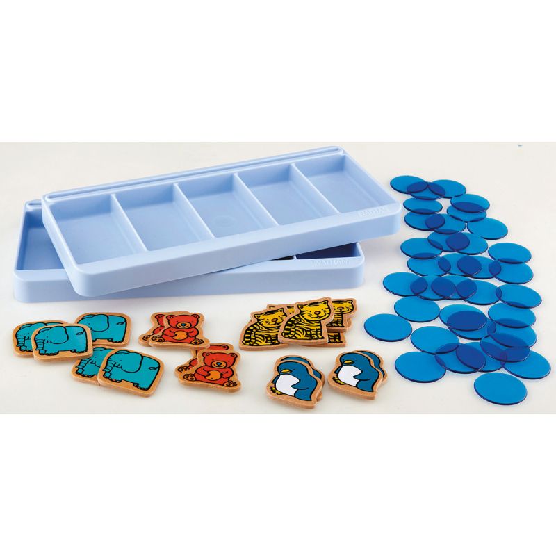 211388418: ¡Añade 2 jugadores más al “Taller para contar 1” con estas fichas! Especificaciones: 2 organizadores de plástico. 18 fichas de animales en madera. 35 fichas redondas de plástico. Edad recomendada: A partir de 3 años.