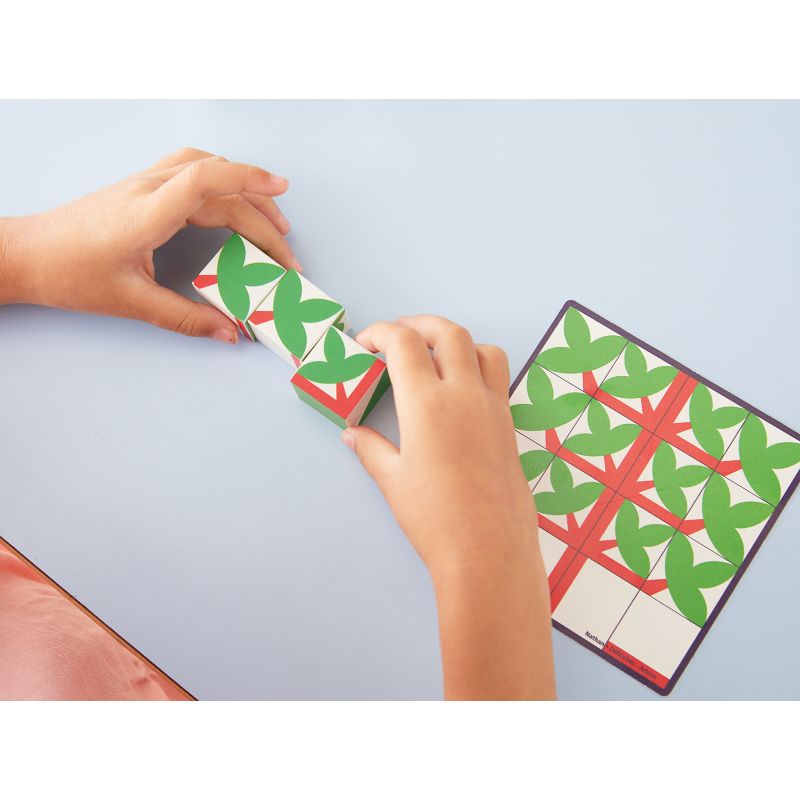 1 caja de cartón que sirve de soporte para encajar los cubos.
