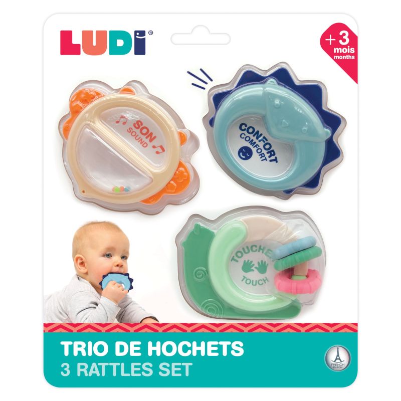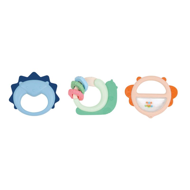 ¡Despierta el interés de tu bebe con este simpático trío de sonajeros!