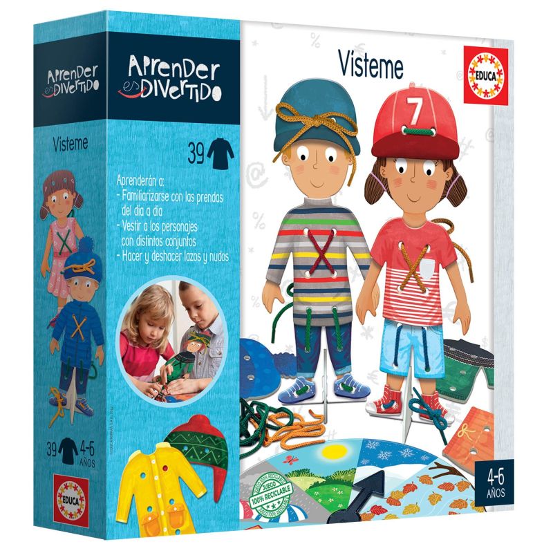 Contenido: 2 personajes, 39 prendas de ropa, 1 ruleta, 4 cordones e instrucciones.