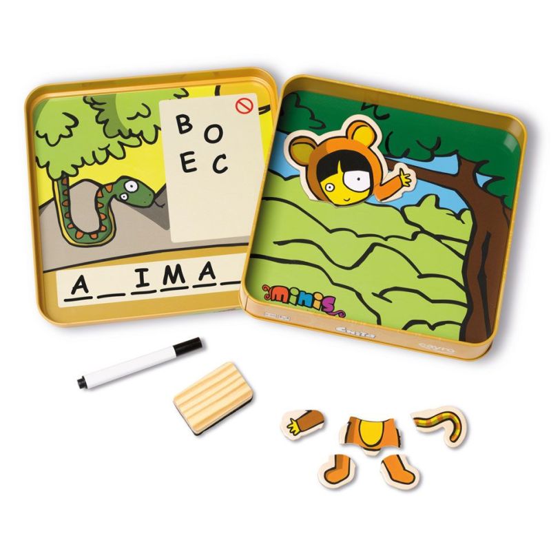 Juego magnético para 2 jugadores. La caja sirve como ahorcado, el árbol de Chita y la tapa como pizarra para colocar la palabra para averiguar.