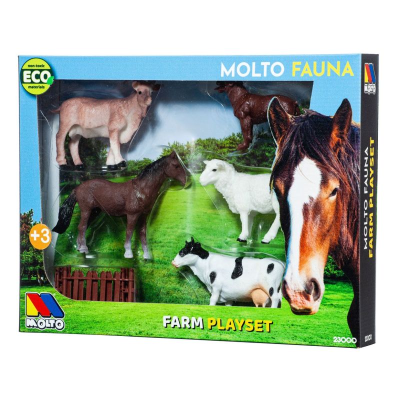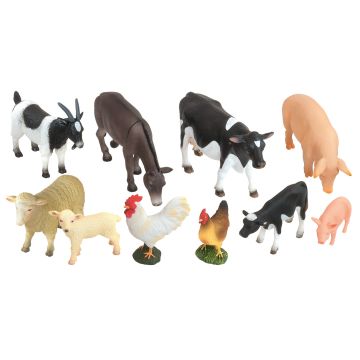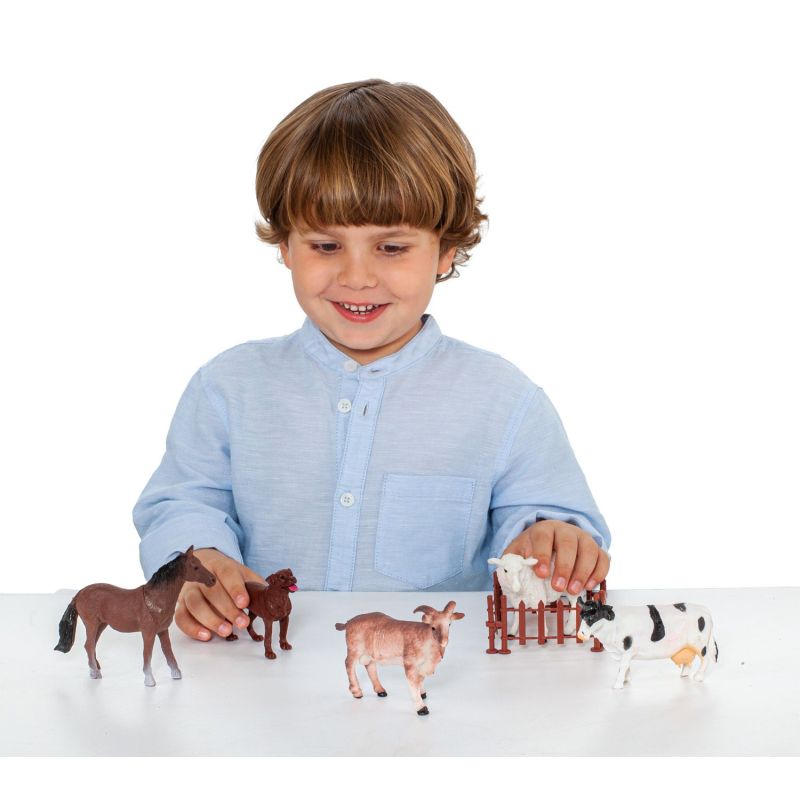 - 5 animales diferentes: cabra, caballo, oveja, vaca, un perro.
