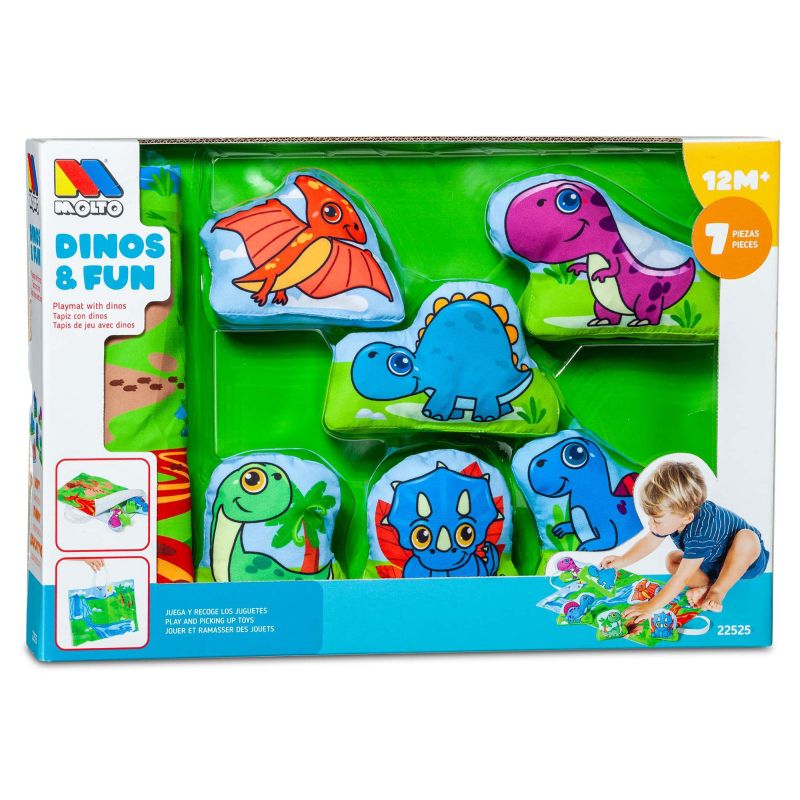 6 bebés dinsoaurio de tela con diferentes formas y colores.