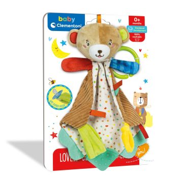 - El peluche lleva una suave mantita para absorber el olor de mamá, de forma que el bebé no pierde el vínculo con su madre, tan importante sobre todo en las primeras semanas de vida cuando las esencias y olores de la mamá y el bebé son tan importantes.