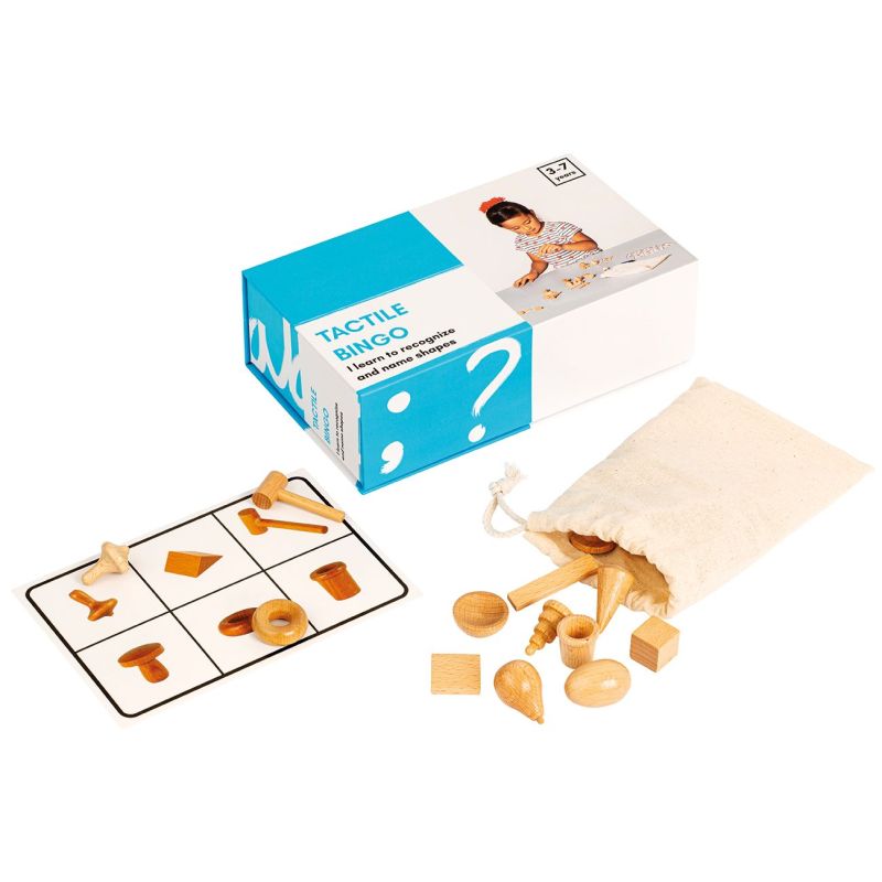 ¡Con este fantástico bingo, la diversión y el aprendizaje están asegurados! - Permite el aprendizaje y asociación de las formas mediante el tacto. - Estimula la concentración. - Favorece la socialización y el trabajo en equipo. - Desarrolla la motricidad fina. - Desarrolla la percepción visual y la memoria. - Estimula el vocabulario. Especificaciones: 18 tarjetas plastificadas con las imágenes. 6 cartones plastificados. 36 piezas en madera.Producto y embalaje realizado en madera con certificación FSC, responsable con el medio ambiente. 25 años de garantía