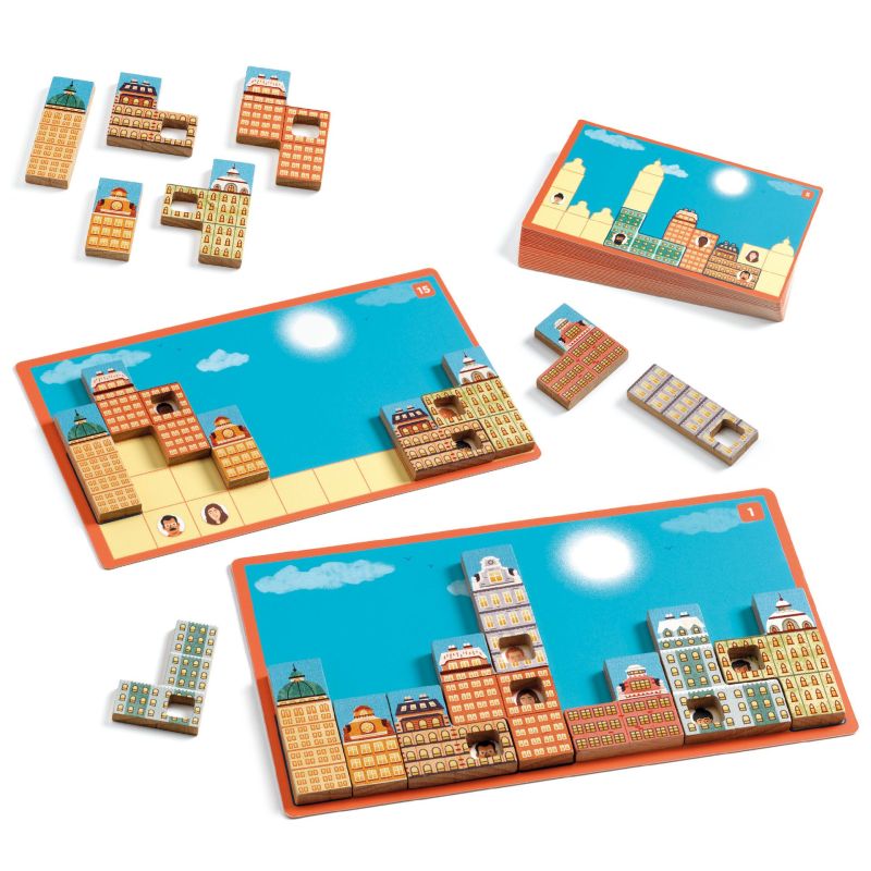 Juego de reflexión: ¡construir edificios en horizontal o vertical, sin tapar la vista de los habitantes! Con niveles de dificultad y 50 desafíos,