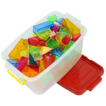 - 6 formas geométricas en 5 colores: prismas rectangulares y triangulares, cubos y cilindros.