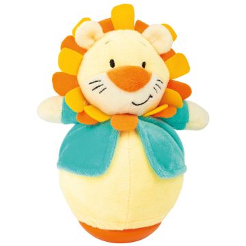 - Cubo encajable con cinco piezas de diferentes formas y colores. Si el tablero de encajar se coloca de lado, hace ruido al rodar.