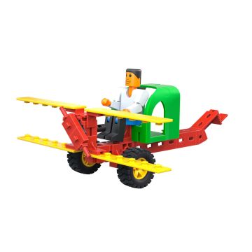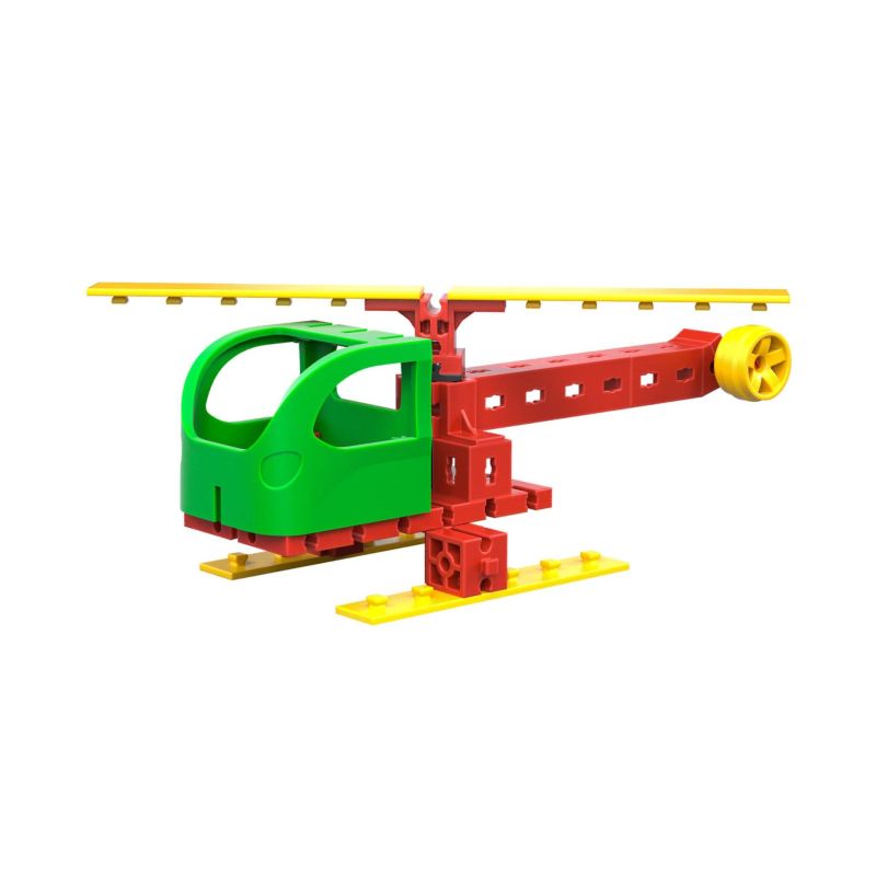 Se pueden construir seis vehículos y dos aviones a partir de los diversos y colores componentes del juego.