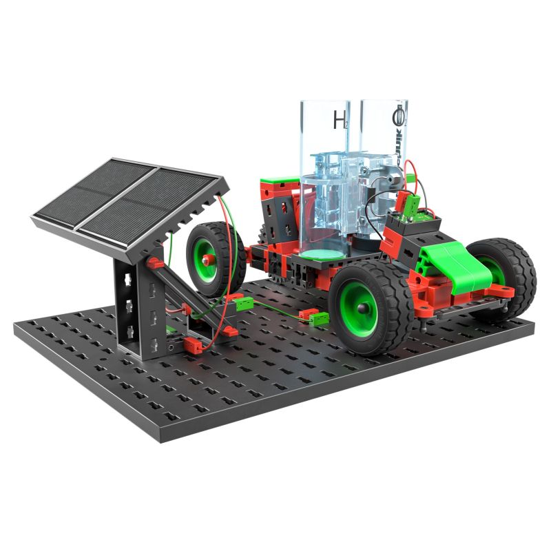 - Motor solar (2VDC), 1 módulos solares (1VDC, 400mA), Gold Cap- acumulador de energía, LED, pila de combustible, convertidor de tensión, multímetro.