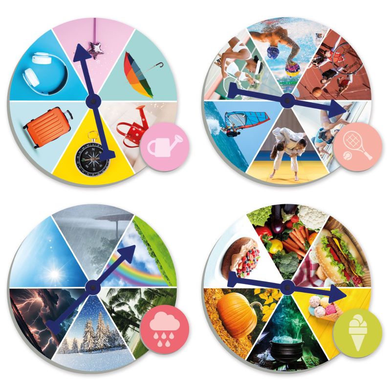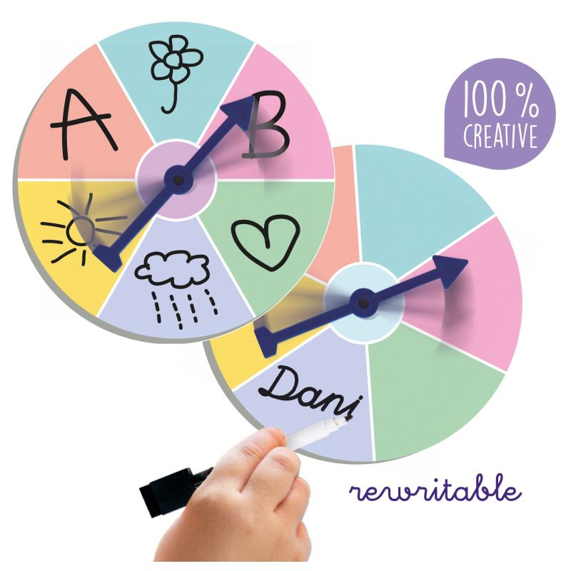 - 2 ruletas reescribibles de cartón resistente (11,5 cm. Ø )