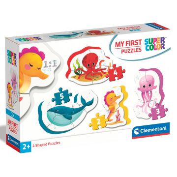 Es REVERSIBLE, por un lado, un puzle de 32 piezas con la imagen de diferentes animales flotando en el espacio y por el otro lado 8 PUZLES de 4 piezas con simpáticos y divertidos animales con sus trajes de astronauta.