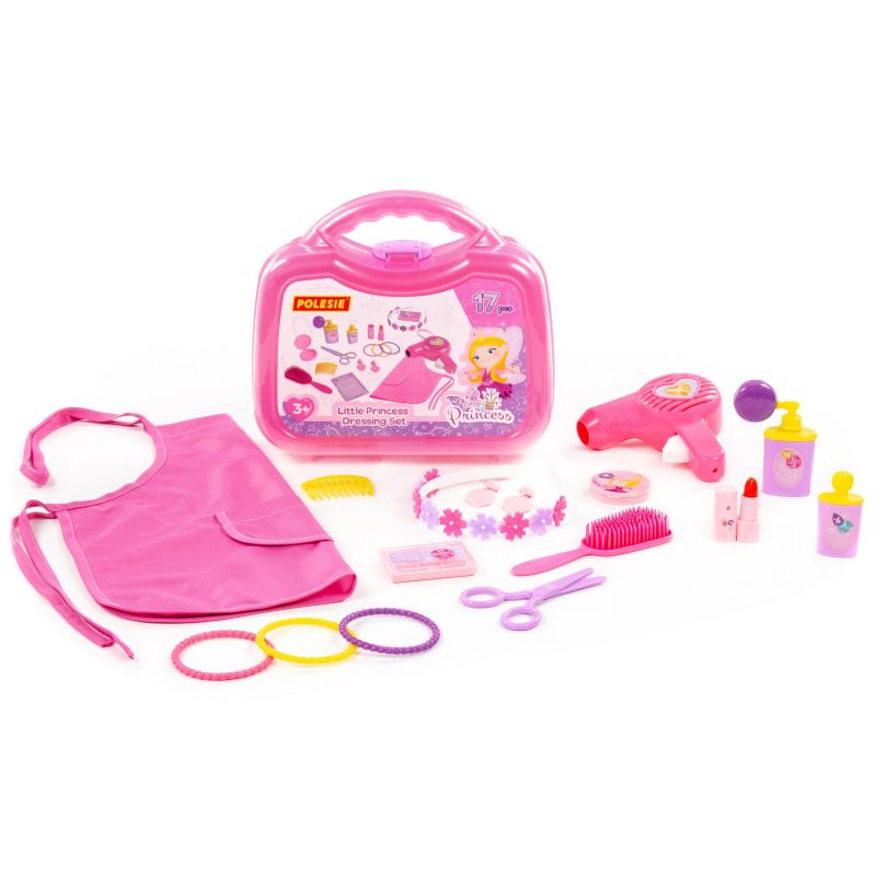 - Incluye: incluye un secador un peine, un cepillo, una diadema para el pelo, un frasco, un pintalabios, unos pendientes y más accesorios.