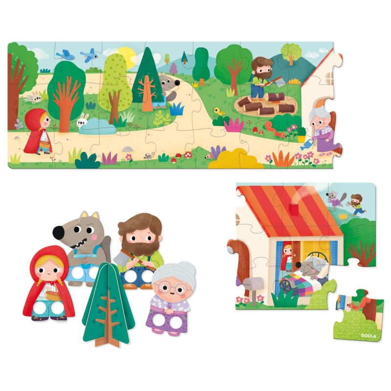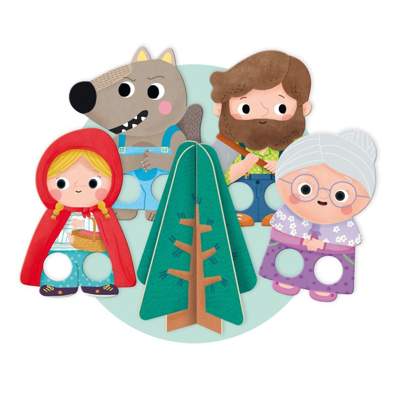 - Puzle de Caperucita Roja con marionetas de los personajes del cuento.