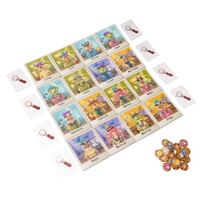 - 25 losetas de sospechosos en cartón duro de 8x7 cm.