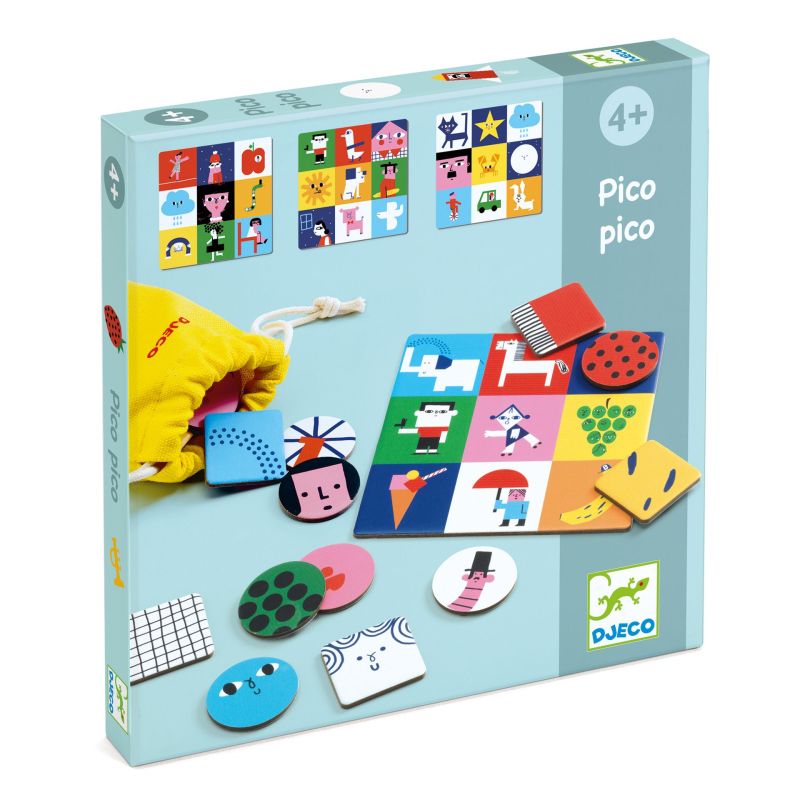 Juego de loto/bingo y de memoria con temática de formas, colores y motivos.