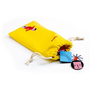 Contenido: 6 tableros de cartón de 12 cm. lado, 27 fichas de cartón (16 redondas de 3,5 cm. de diámetro y 11 cuadradas de 3,5 cm. lado) y una bolsa de tela. Con instrucciones de reglas de juego.
