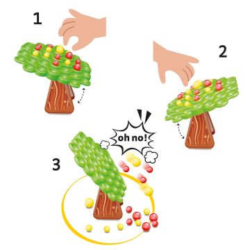 - Cada jugador por turnos debe poner las manzanas en la copa oscilante del árbol sin que se caigan. ¿Lo conseguirás?
