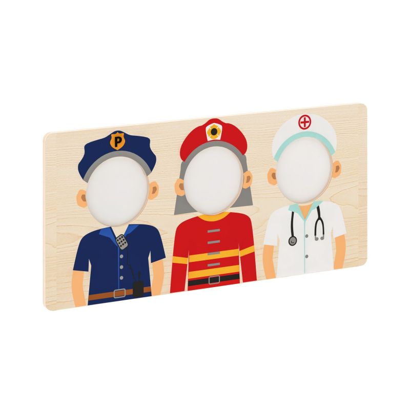 - Personajes de diferentes profesiones con espejo para reflejar la cara de los más pequeños.