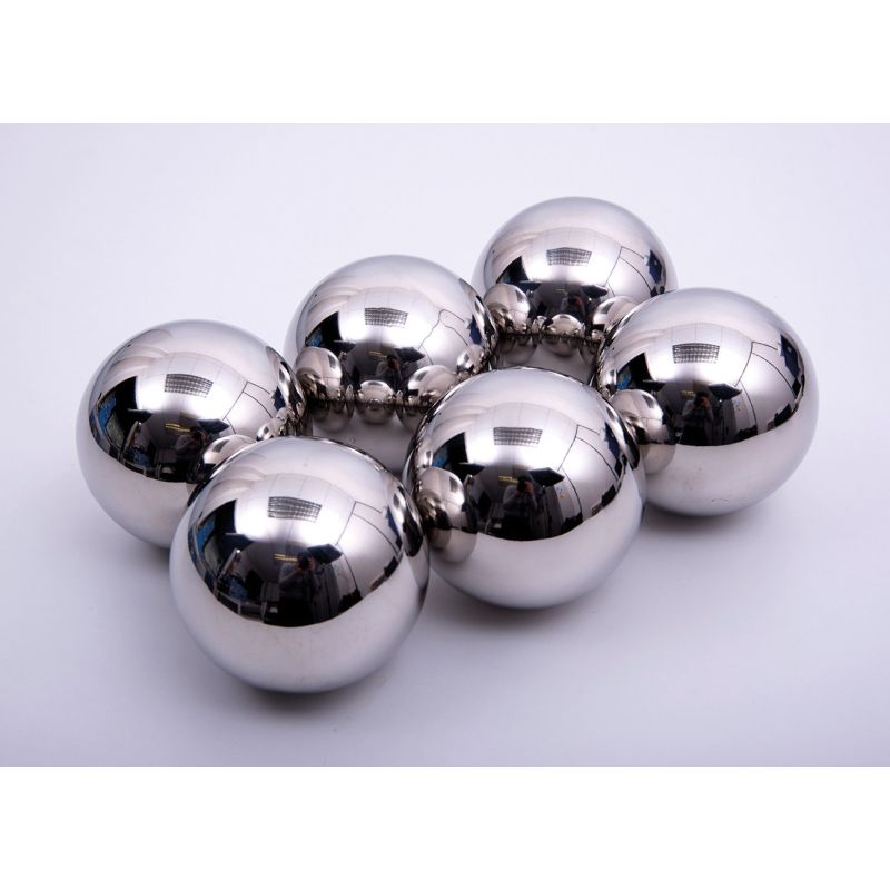 Pelotas recubiertas de acero inoxidable. De 10 cm. de diámetro.