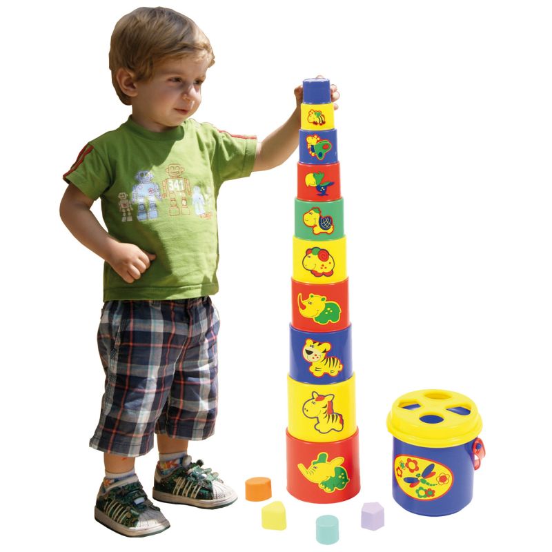 ¡Diviértete apilando los diferentes cubos y crea enormes torres!