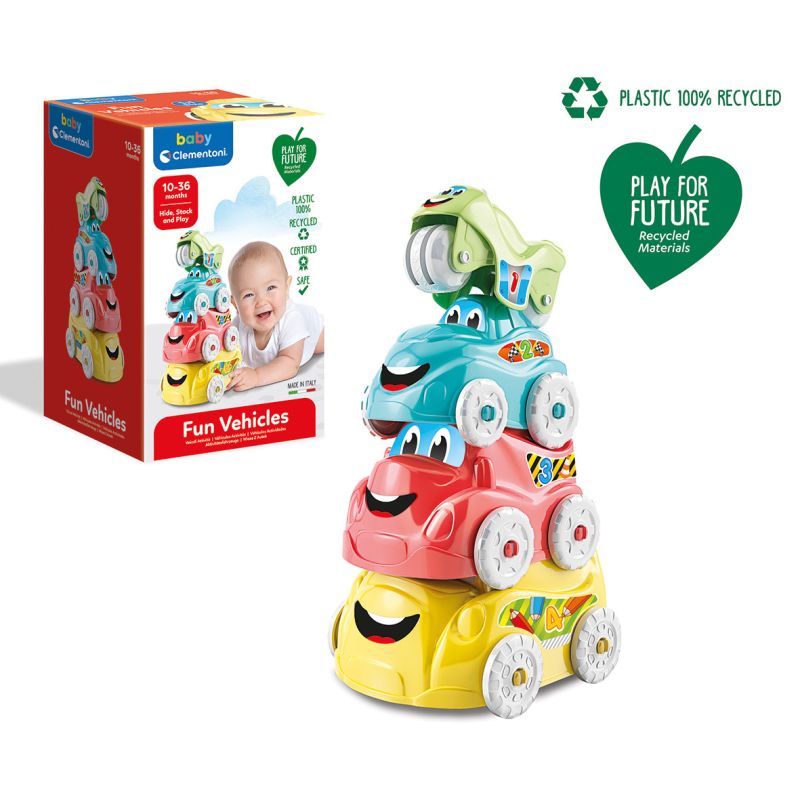 Conjunto de cuatro vehículos formado por: un autobús, un camión, un coche y una moto para un sinfín de aventuras sobre ruedas.