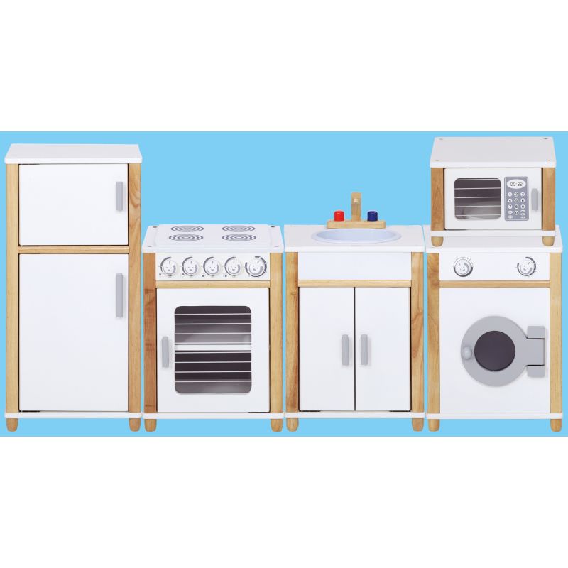 - Cocina de gran tamaño compuesta por 5 módulos: frigorífico, cocina, fregadero, lavadora y microondas.