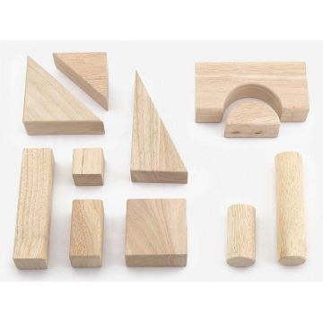 8 Piezas realizadas en madera, pintadas de distintos colores.