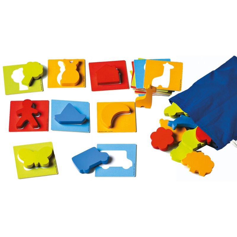 - Identifica las figuras que están dentro de la bolsa para hacerlas coincidir con las tarjetas que tienen impresas la silueta.