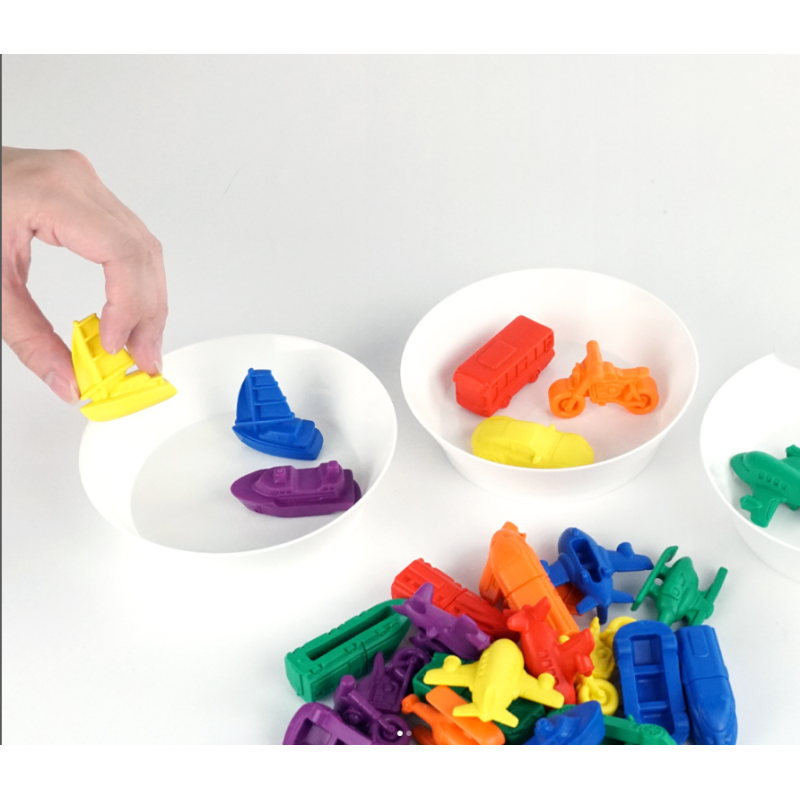 ¡Disfruta identificando los diferentes tamaños, colores y pesos con estos divertidos vehículos!