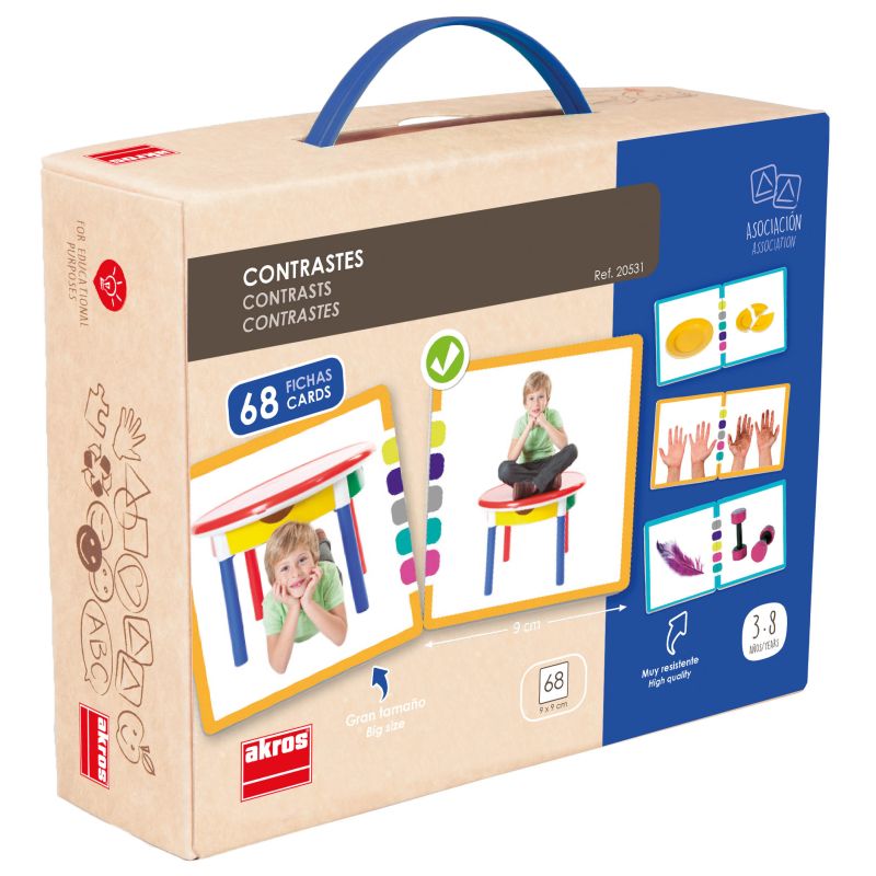 68 fichas en cartón resistente de 9 cm x 9 cm.