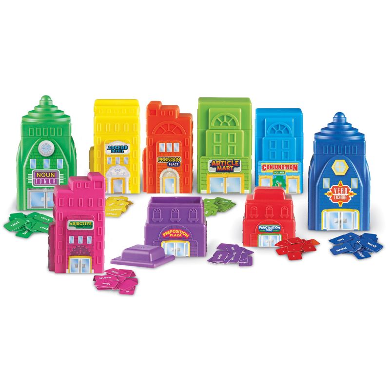 300 tarjetas que incluyen: sustantivos, adjetivos, verbos, pronombres, conjunciones, adverbios y signos de puntuación.