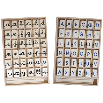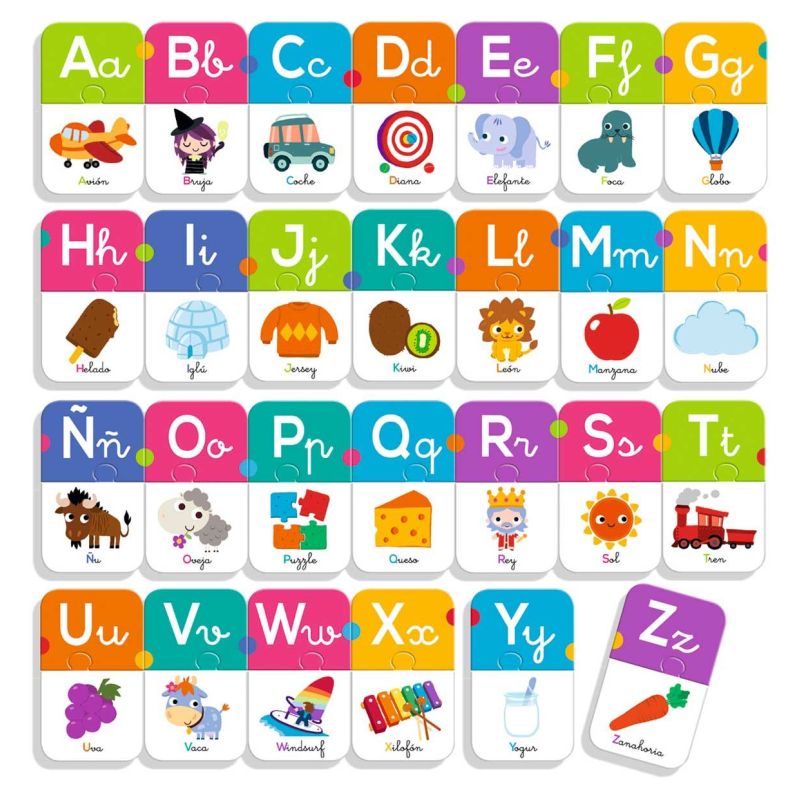 28 piezas con letras mayúscula y minúscula, y una imagen que empieza por la misma letra.
