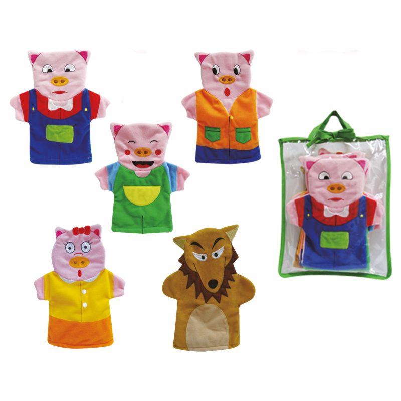 5 personajes diferentes: lobo, cerdita y 3 cerditos.