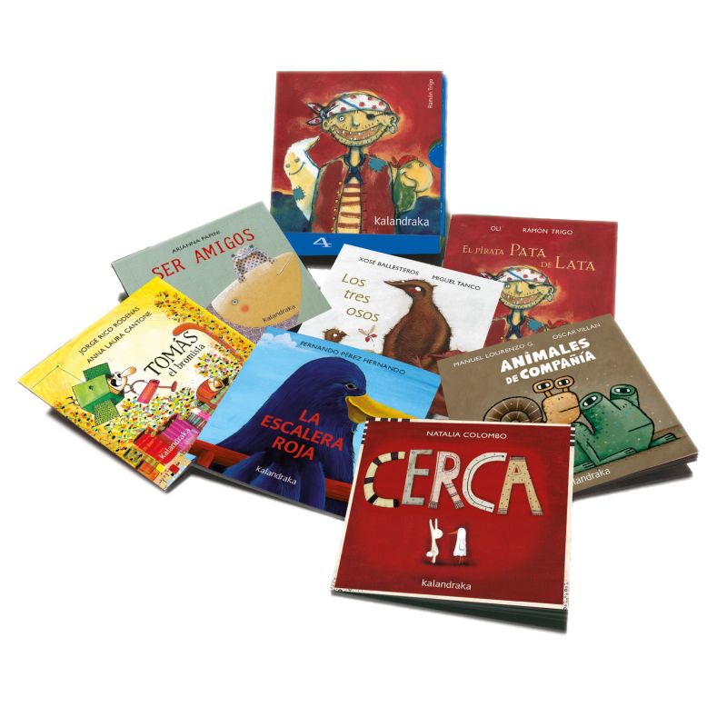 7605013: ¡Las obras más conocidas, reunidas en una cajita de libros... pequeños y sueños... muy grandes! Esta caja contiene los siguientes títulos: · Animales de compañía · Cerca · El pirata Pata de Lata · La escalera roja · Los tres osos · Ser amigos · Tomás, el bromista 7 titulos de 7x7 cm.