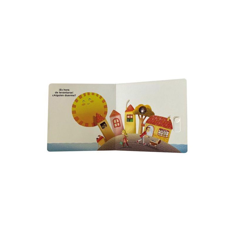 Un título todo cartón para aprender las actividades y rutinas diurnas. Con ilustraciones del reconocido ilustrador Xavier Salomó, el libro cautivará a los más pequeños cuando sus dedos deslicen las lengüetas hacia arriba, haciendo que todo el mundo se despierte.