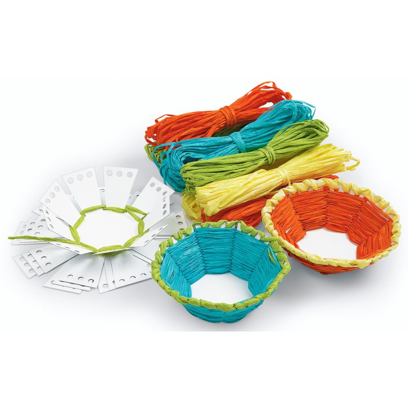 Contenido: 12 plantillas de cartulina, 24 paquetes de rafia.