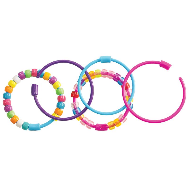 - Realiza pulseras insertando las cuentas en los brazaletes.