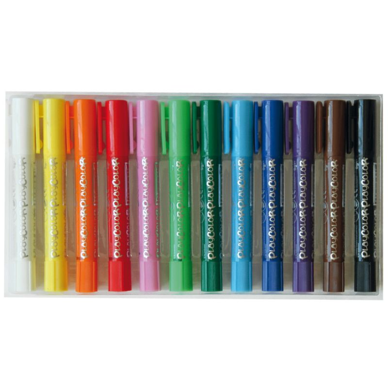 POCK6: ¡Imagina y crea un mundo nuevo con las témperas sólidas de Play Color! - Desarrolla la coordinación y la motricidad fina. - Fomenta la imaginación y la creatividad. - No se necesita pincel ni agua, válidas para todo tipo de superficies. - Fáciles de usar, simplemente girando la punta. - Gran capacidad cubriente. - Colores vivos y brillantes. - Elige tu formato: - Caja con 12 unidades surtidas. - Caja con 144 unidades surtidas. Especificaciones: Edad recomendada: a partir de 3 años. Sin parabenos ni alérgenos. Medidas: 1,5 cm de diámetro x 5,5 cm de largo.