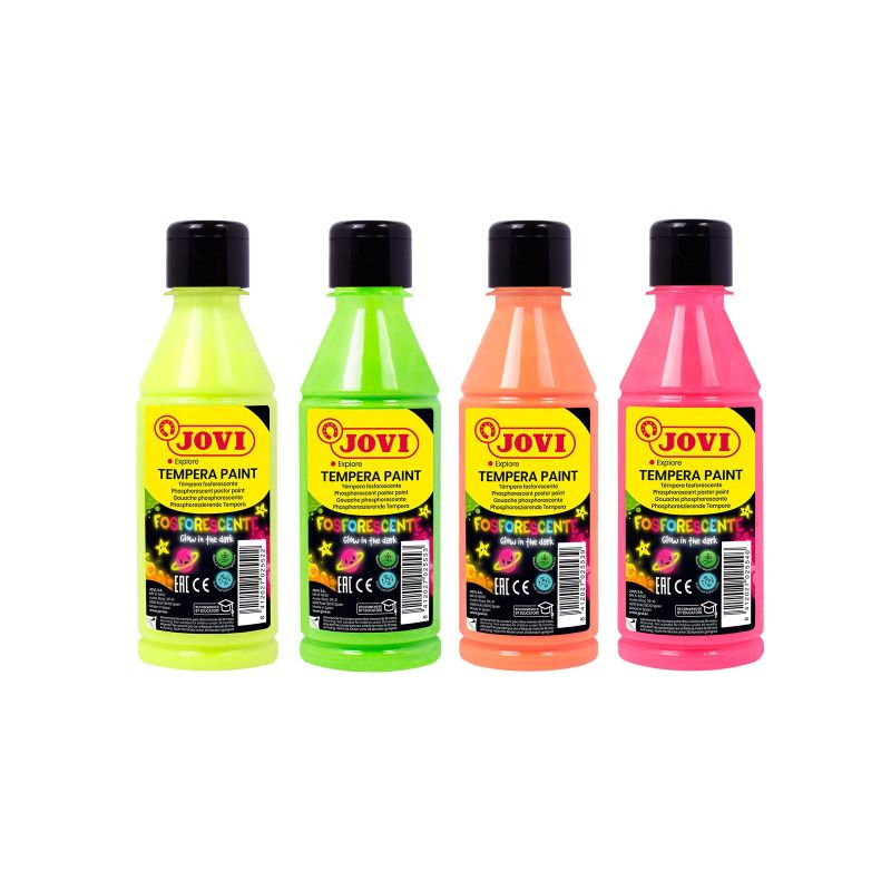 FOA: ¡Saca al artista que llevas dentro con estas témperas fosforescentes! - Aptas para uso escolar. - Desarrolla la creatividad y la imaginación. - Estimula la motricidad y la coordinación. - Alto poder cubriente y secado rápido. - Carga la pintura con luz natural y descubre como brilla en la oscuridad. Especificaciones: Realizada a base de agua. Se venden en botellas de 250 ml. Elige el color que más te guste.