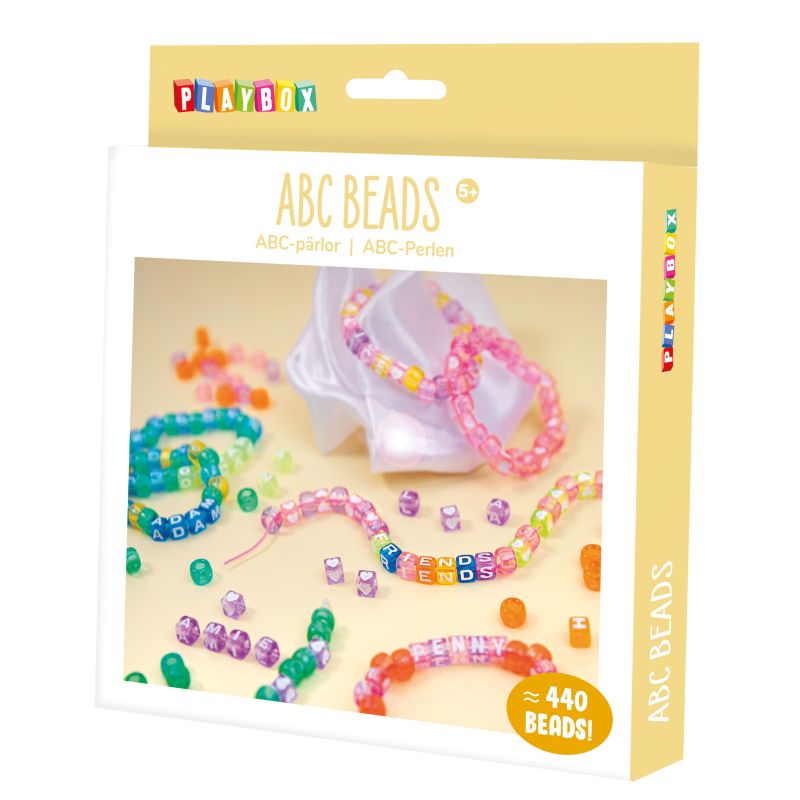 - Realiza numerosas pulseras con cuentas transparentes de colores vivos con diferentes letras.