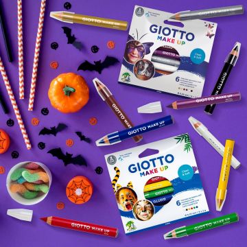 MAKE: ¡Maquíllate de forma rápida y fácil con estas fantásticas barras de colores surtidos! - Testadas dermatológicamente. - Barras de 9 cm con 2 gramos de pintura. - Se sacan y se guardan de manera sencilla girando la cubierta. - Con tapa. - Lavables con agua y jabón. - Dos formatos diferentes: - Colores básicos: amarillo, azul, blanco, negro, rojo y verde. - Colores metalizados: blanco, oro, plata, bronce,negro y violeta.
