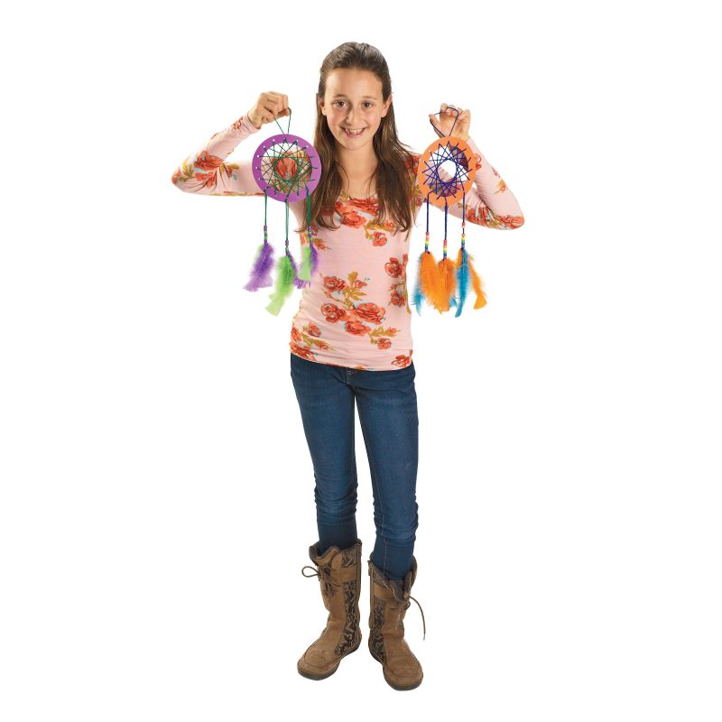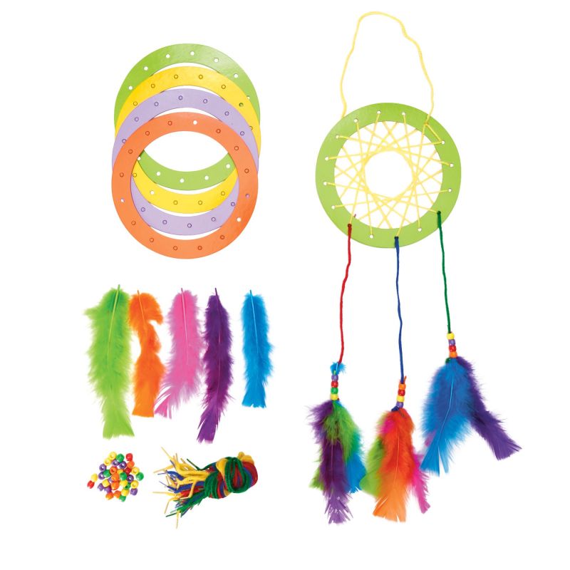 - El kit incluye: 12 anillos de cartulina, cuentas, plumas, hilos de colores.