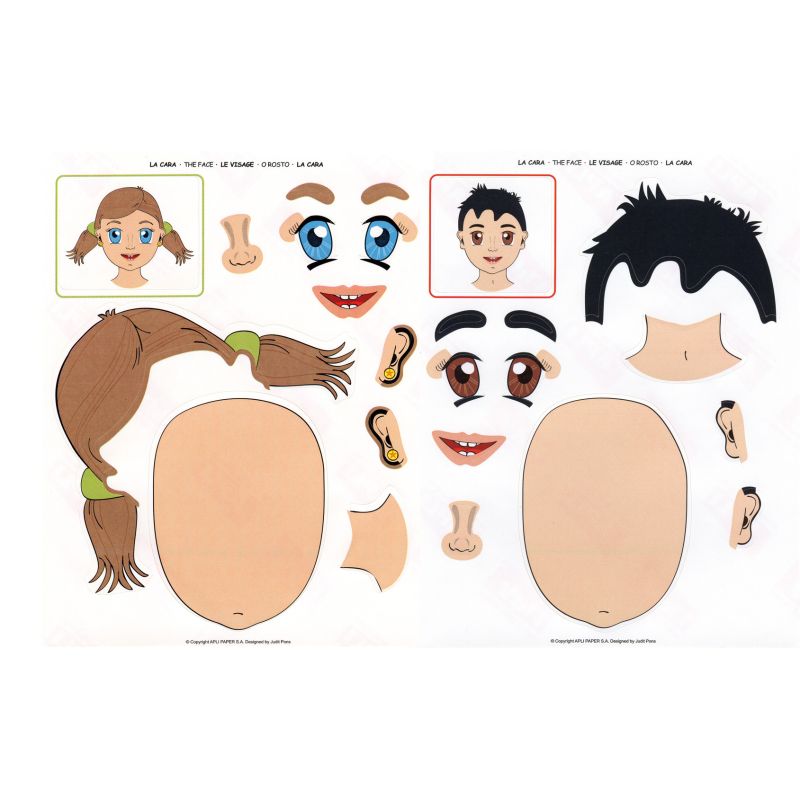 ¡Reconoce los ojos, la nariz, las orejas, etc. y realiza tus propias composiciones con estos divertidos gomets!