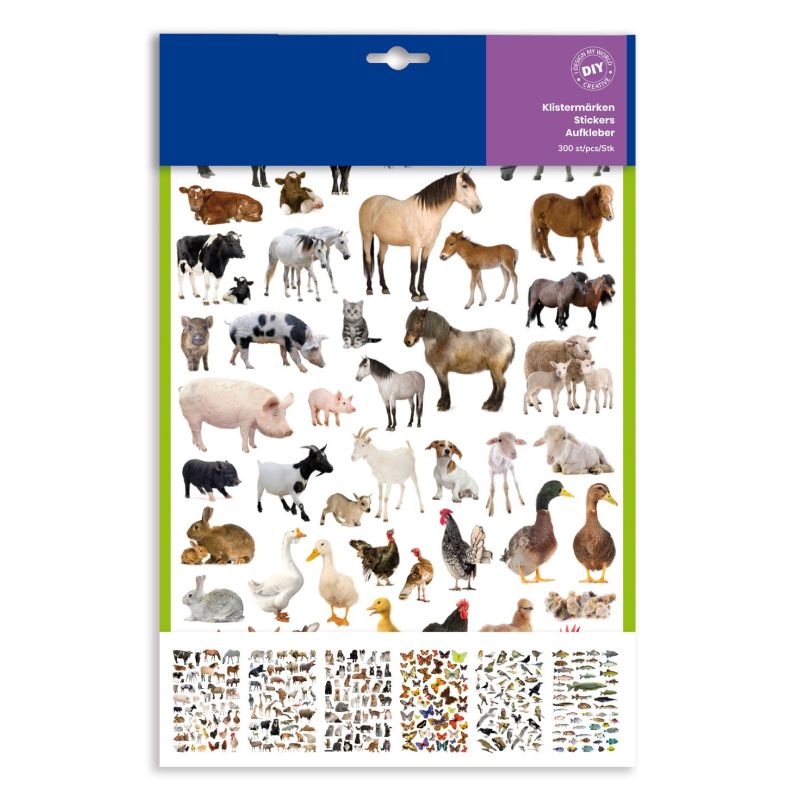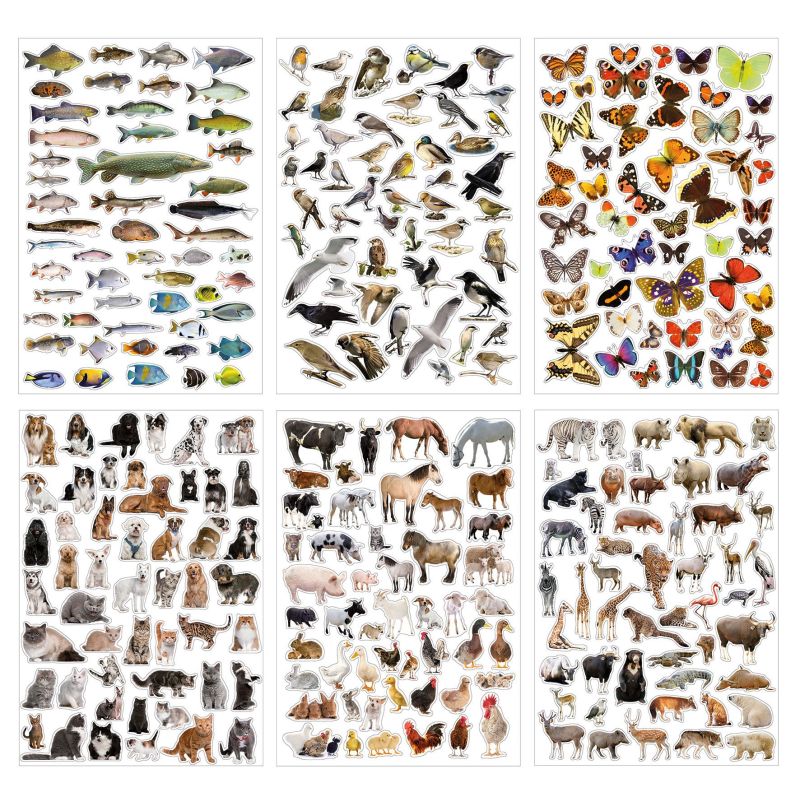 6 hojas con 300 pegatinas de animales de diferentes categorías.