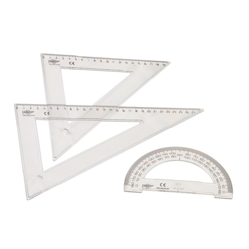 CARTE: ¡Crea dibujos lineales perfectos con nuestro material de técnico! - Fomenta la coordinación y la motricidad. - Estimula la creatividad. - Realizados en PVC de alta calidad. - Resistentes. - 30 cm de largo. - Numeración marcada en los laterales. - Elige el modelo que necesites: cartabón, escuadra o transportador de ángulos de 15 cm de largo. Especificaciones: Se vende en caja de 20 unidades.